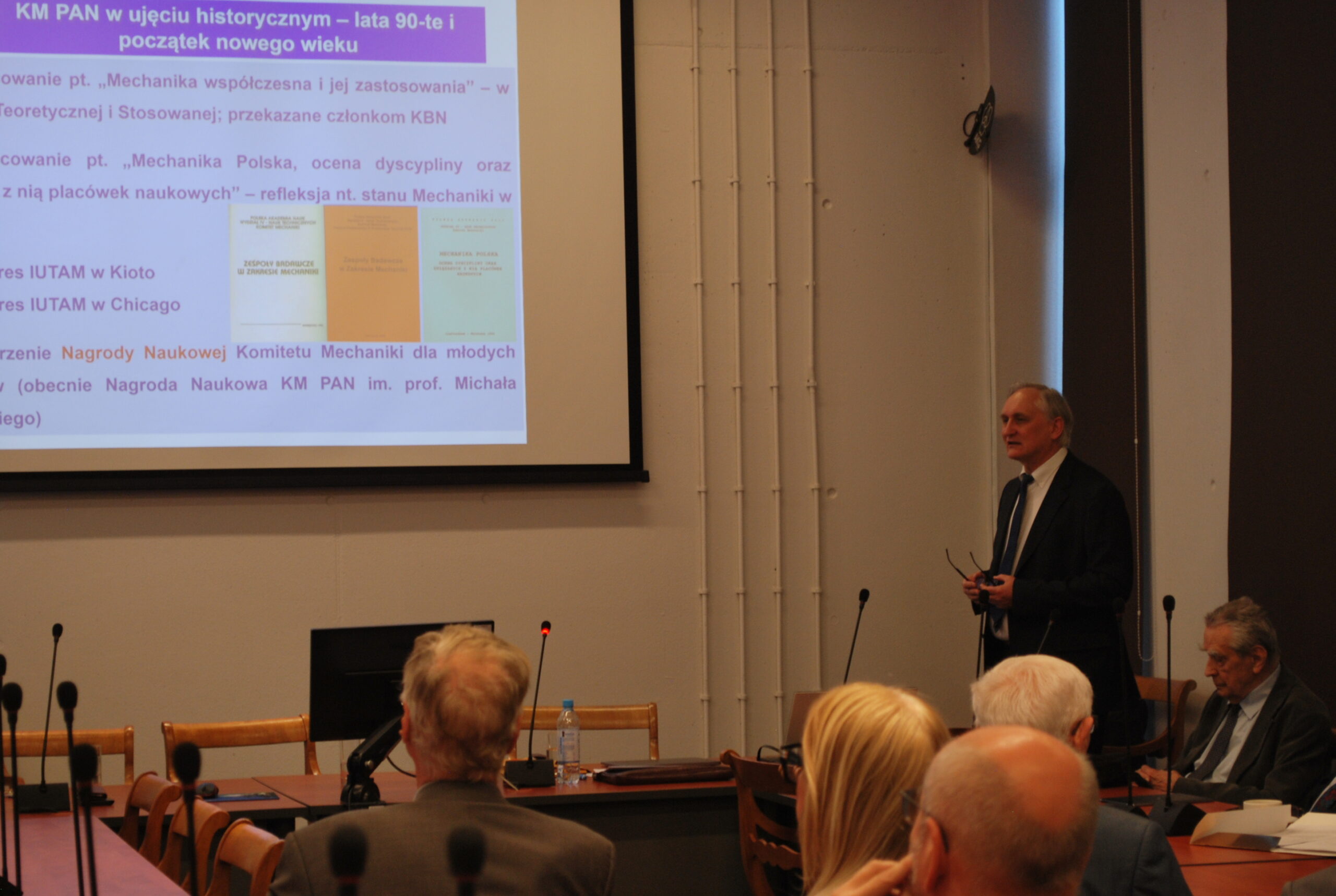 Działalność Komitetu w ujęciu historycznym (prezentacja) przedstawił prof. Błażej Skoczeń. Kontynuując jego wypowiedź, wystąpili kolejno: prof. Gwidon Szefer, prof. Andrzej Styczek, prof. Tadeusz Burczyński, oraz prof. Stanisław Stupkiewicz, którzy pełnili funkcję Przewodniczących Komitetu Mechaniki w ubiegłych latach.