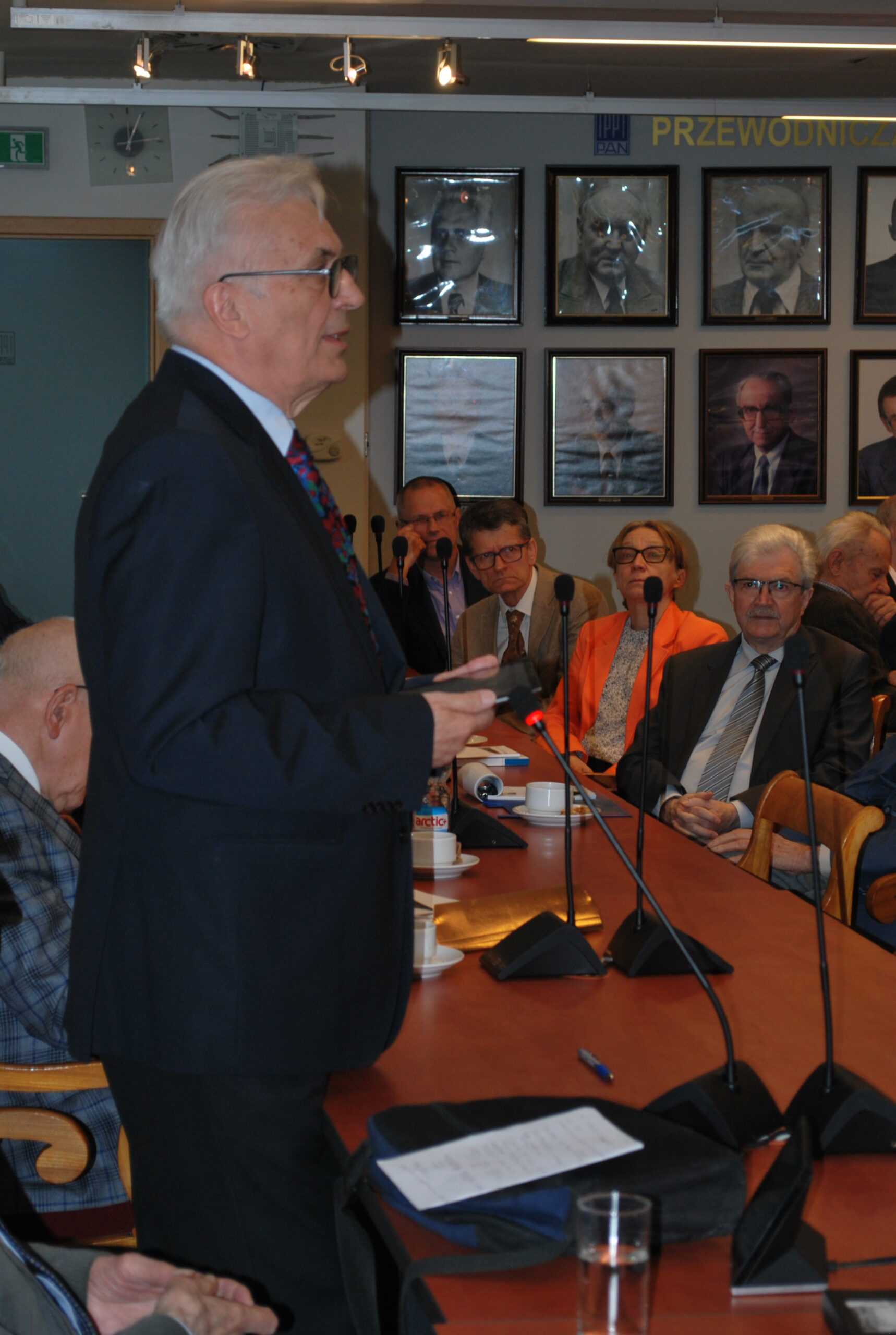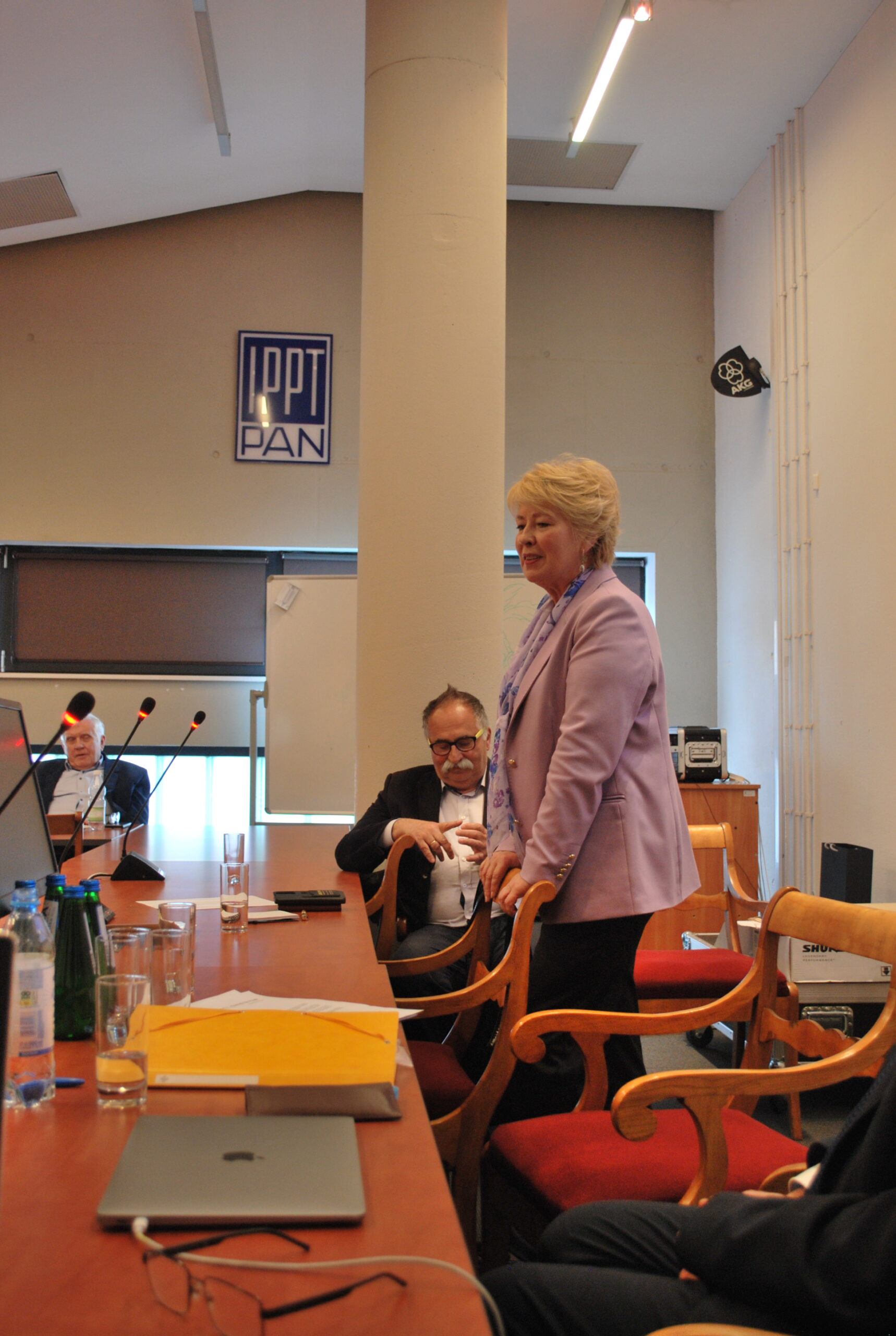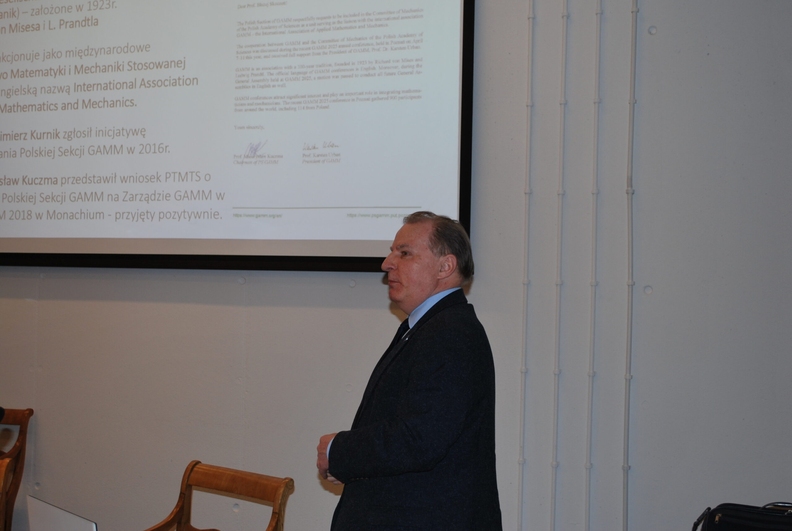 Zebranie otworzył Przewodniczący Komitetu prof. Błażej Skoczeń, a dalszego wprowadzenia dokonali: prof. Natalia Sobczak Wiceprezes PAN oraz prof. Tomasz Kapitaniak Dziekan Wydziału IV Nauk Technicznych PAN. W czasie zebrania odczytane zostały listy gratulacyjne przesłane przez Profesora Jacquesa Magnaudet’a, Prezydenta Międzynarodowej Unii Mechaniki Teoretycznej i Stosowanej (IUTAM), oraz Profesora Antonio De Simone, Sekretarza Generalnego Międzynarodowego Centrum Nauk Mechanicznych (CISM).